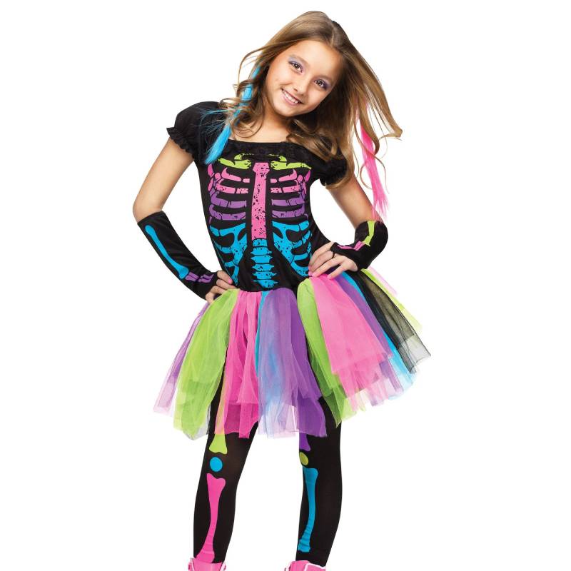 Funky Punk Bones Childs Costume is a colorful way to dress for Halloween. Dress your child in this cute skeleton attire for Trick-o-Treating or house parties. It is comfortable and easy to wear all night. The bones are screen-printed.. so no risk of cracking latex in the wash.