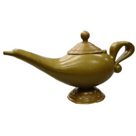 This plastic dark gold colored genie lamp is the perfect accessory for your Aladdin Halloween costume. This can be used for school plays, too.