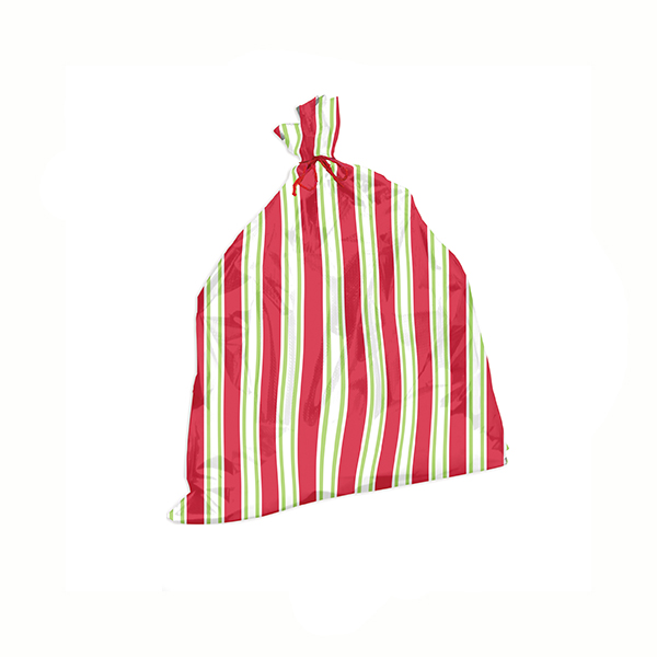 Wrap your large gifts in this beautiful red, white & green striped gift bag! Tie up the bag with the included red cord. Sack measures 36″ x 44″. Red cord included.