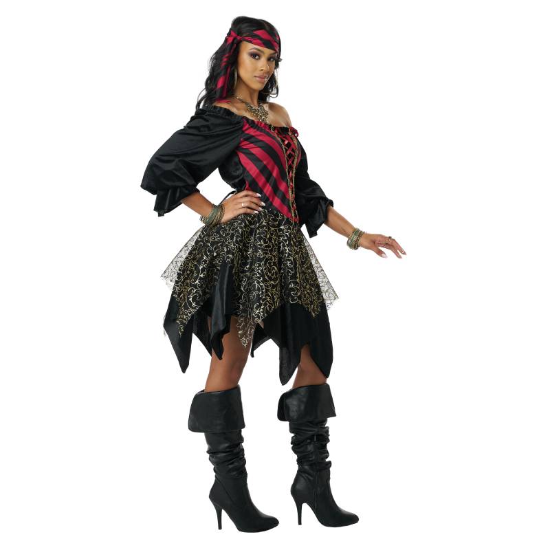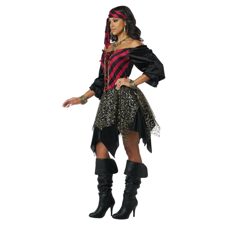 This corset styled dress allows you to lace up the from for a custom fit. It has a jagged skirt hemline. The sheer fabric overskirt is decorated with a glitter pattern. The elastic neckline allows for an off the shoulder look.