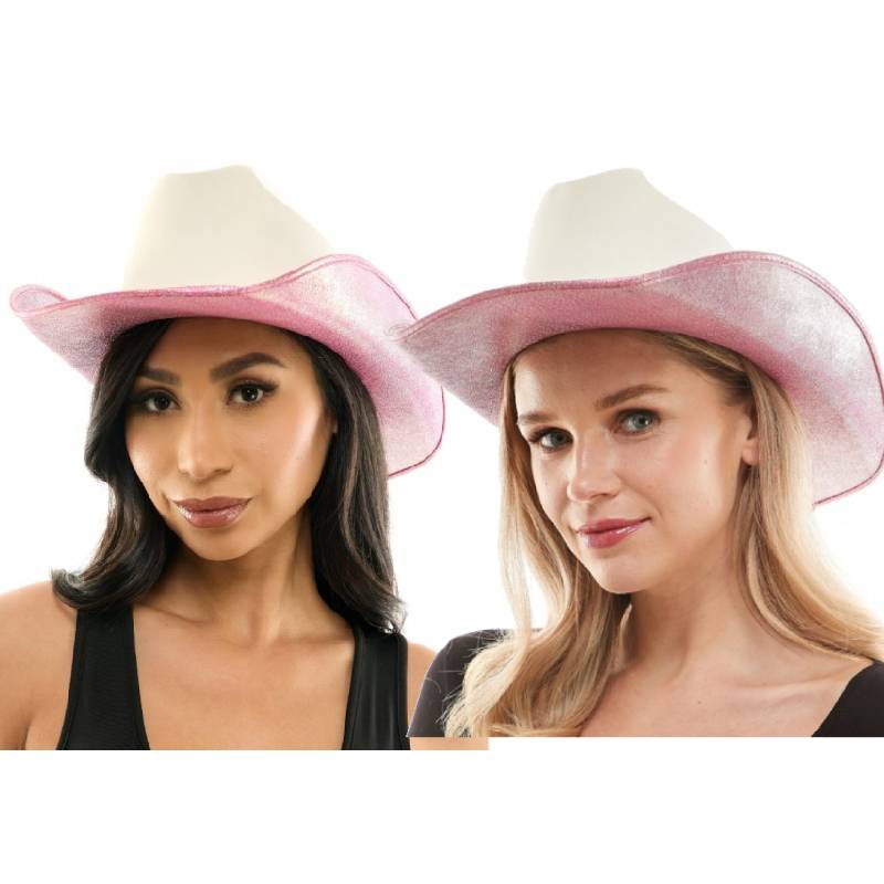 Glitter Fabric Western Hat is perfect for Barbie themed parties, fabulous western parties, Halloween, other themed parties, drag, cosplay, and theatrical performances.