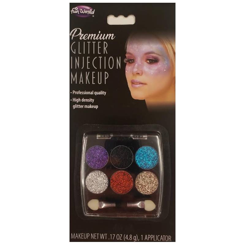 Glitter Injection Makeup Kit adds the final flare in your body art creation! It has 6 brilliant, high density colors and 1 dual-tip applicator.