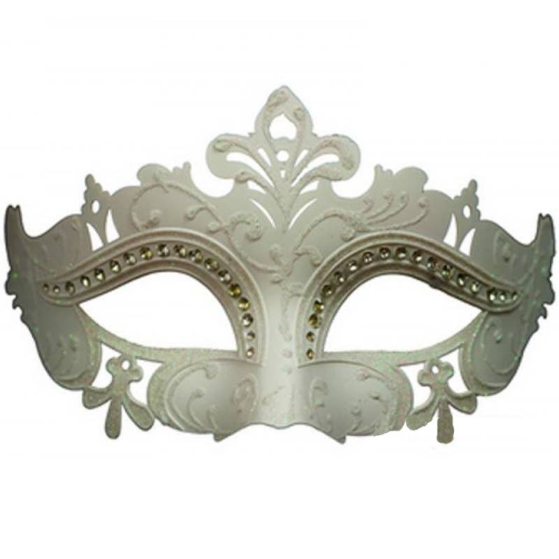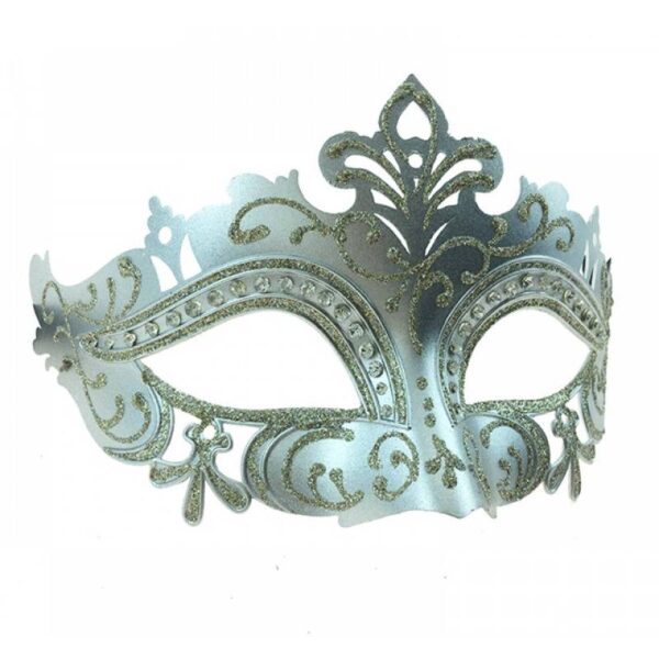Overall, the Glittered Venetian Half Mask with Rhinestone Trim blends traditional craftsmanship with modern aesthetics, making it a popular choice for masquerade parties, themed events, and theatrical productions where elegance and intrigue are desired.