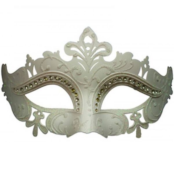 The Glittered Venetian Half Mask with Rhinestone Trim is an exquisite and elegant accessory commonly associated with Venetian masquerade balls and other festive events. Here’s a detailed description: