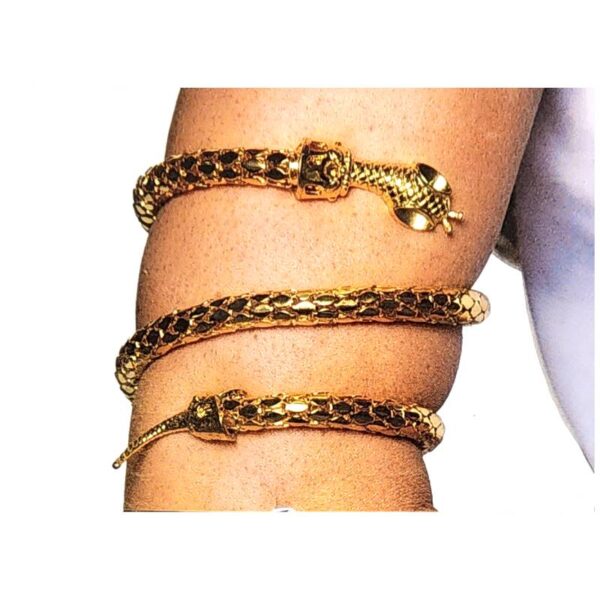 Perfect jewelry accessory for your Cleopatra or Egyptian Queen costume, this snake arm band is made of gold metal and has black gems for eyes.