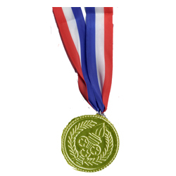 Plastic Award Medallion On Patriotic Ribbon comes in Gold, Silver, Bronze. Although these plastic medallions do not specifically state first, second, or third place, they are the traditional color used for awards. The plastic medal hangs on a red, white & blue ribbon which can be worn around the neck. This is a nice recognition award suitable for adults or children.