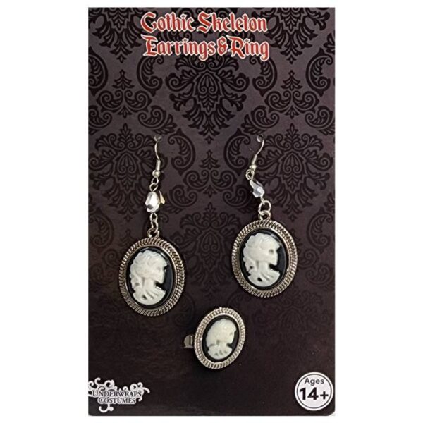 Gothic Skeleton Earrings and Ring Set is perfect for gothic or Halloween-themed events, costume parties, cosplay, or as a statement piece in everyday wear for those who appreciate dark and edgy fashion. It combines elements of gothic fashion with a touch of mystique, making it a standout accessory that adds a hint of intrigue and personality to any ensemble.