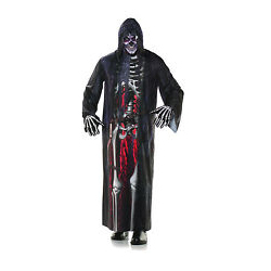 Slip this Hooded Grim Reaper Bloody Skeleton Robe over what ever you are currently wearing and you have an instant costume!