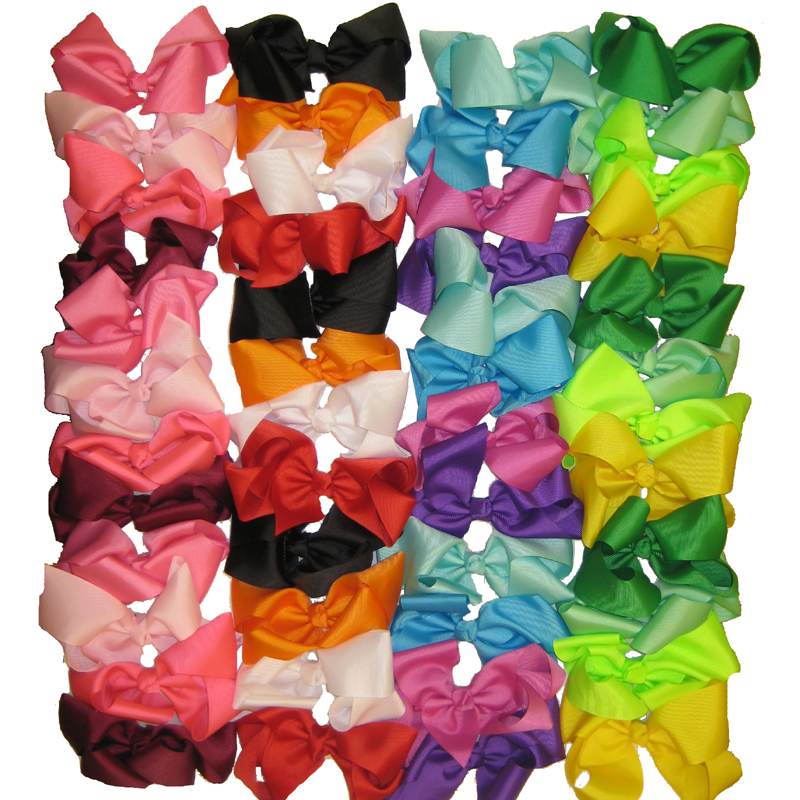 Check out the solid color bows here! Hair Bow Solid Colors, Prints, and Rhinestone Studded are available in 16 colors of solid color ribbon, as well as many other styles!