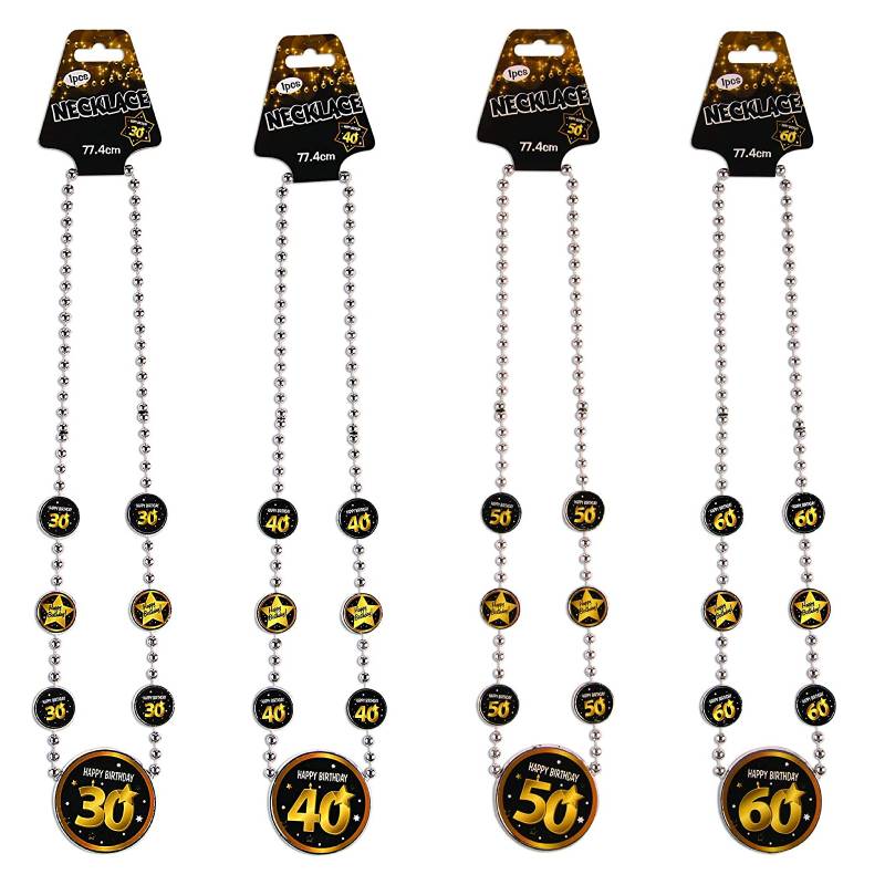 Show up the the celebration with Happy Birthday Bead Necklace w Medallion. It measures approximately 30″. This is a great birthday accessory!