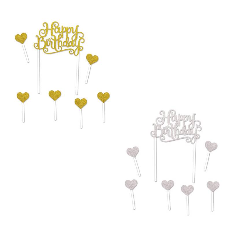 Happy Birthday Cake Topper Gold or Silver adds a classy touch to your cake decorations.