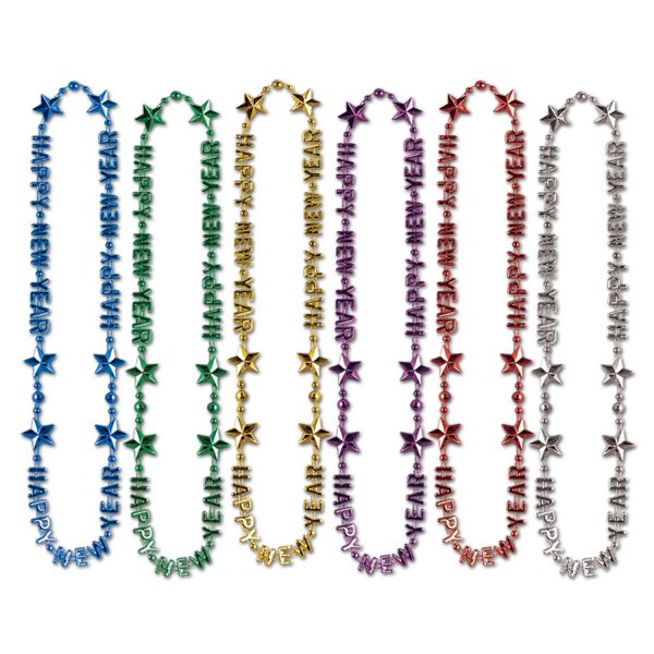 Happy New Year Bead Necklace comes in an assortment of colors. You can choose between blue, green, gold, purple, red or silver.
