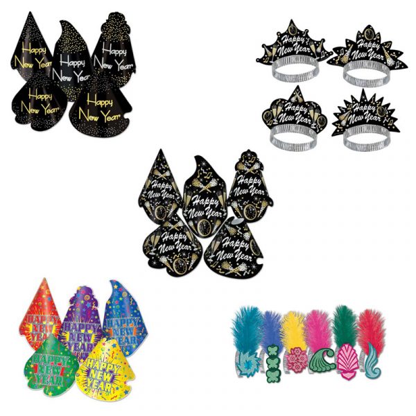 Celebrate in style with a Happy New Year hat or tiara for each guest! Choose from 5 styles!