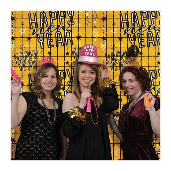 Hang Happy New Year Metallic Square Curtain near every doorway to cheer your guests into the new year! Choose from glittered gold lettering with black trim or multi-colored.