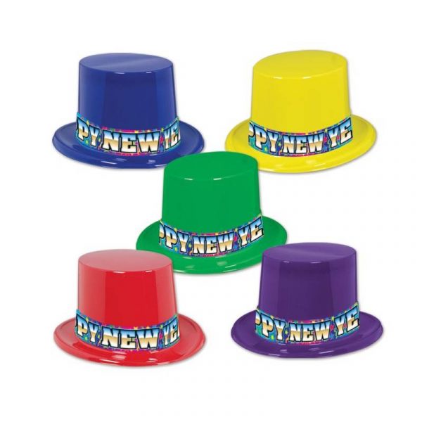 Happy New Year Rainbow Blast Plastic Top Hat brings color to your New Year’s Eve attire. Buy this hat in bulk to pass out as party favors. Use this as a table decoration. flip it upside down and use it as a gift basket. It comes in 5 different colors with “HAPPY NEW YEAR” written in rainbow stripes. Break away from the classic black and gold. Buy these for you and your friends.