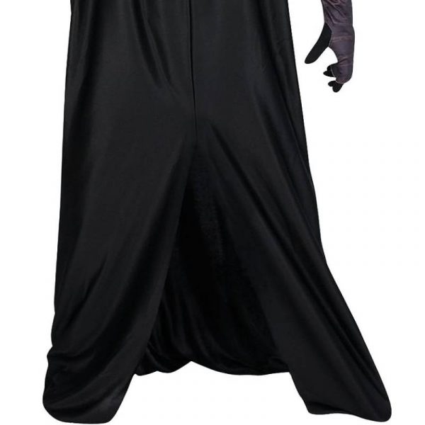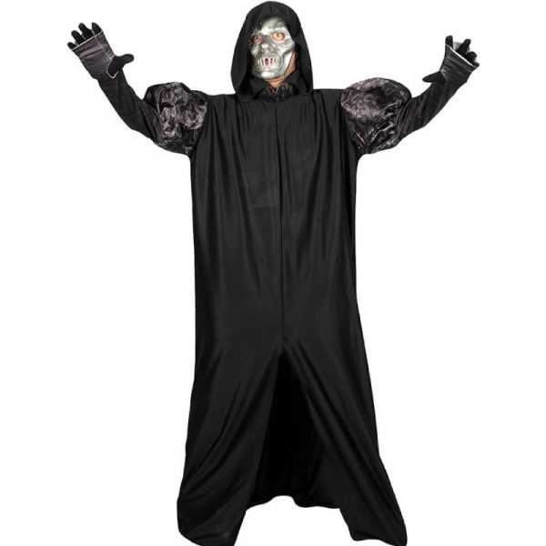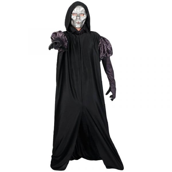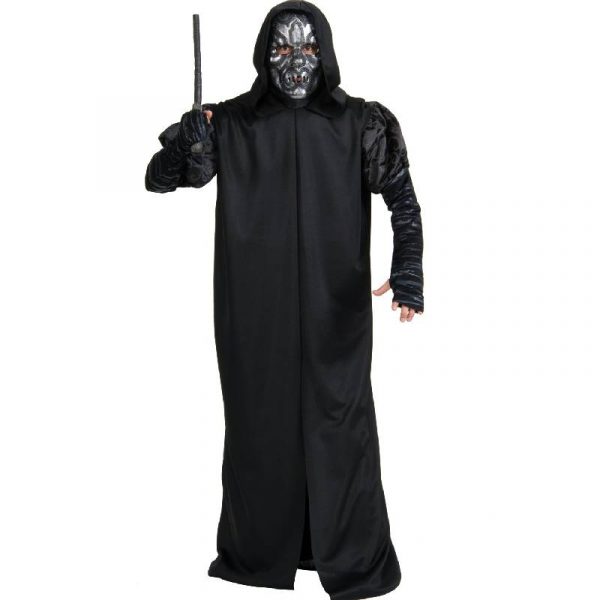 Harry Potter Death Eater costume has long sleeves that go past your knuckles, with holes for your thumbs. The mask has an elastic band which goes around the back of your head for a secure fit. With your refined skill at occlumency, hide your true motives. Conceal your identity and add terror to your victimes with the mask.