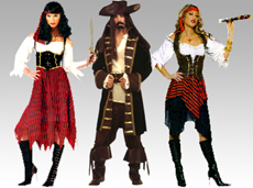 High Seas Pirate. Pirate Maiden costume includes head sash, and long dress with attached vest. Available in standard size, fits up to ladies size 12. Pirate cutlass and boots sold separately. (Model for the Pirate Maiden costume has dark hair.)