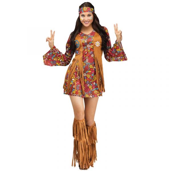 What a great hippie Halloween costume dress! The attached fringed vest and boot covers really make this a super looking outfit.