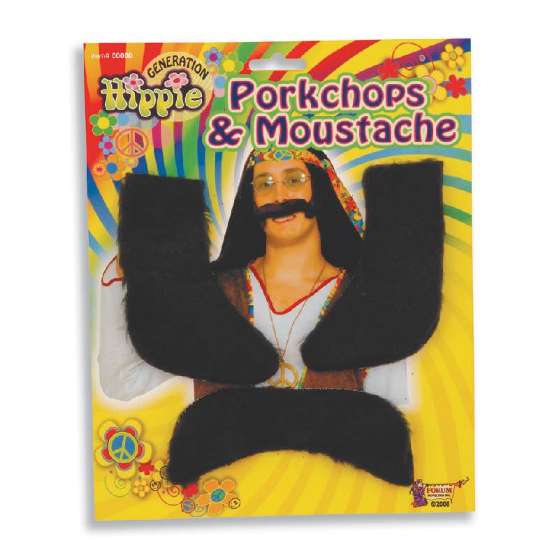 Hippie Porkchop Sideburns & Moustache Set