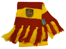 This is an officially licensed Harry Potter Hogwarts Knit Scarf. Fun to wear for any occasion, or as a costume accessory. The scarf includes an embroidered Hogwarts insignia. This is a red & gold stripe knit scarf of excellent quality.