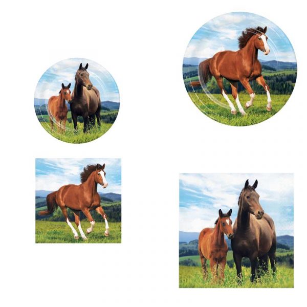 This pattern features a mare and foal on the lunch napkins and a mare with four white stockings and a white blaze on the dinner plates and beverage napkins. They have no date on them, so you can use them for this year’s Kentucky Derby party and next if you have some left over. Of course you can always add some solid color napkins or plates to the pattern to make them go a bit further.