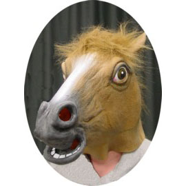 Comfortable full face horse mask. Can be used with or without a costume. Light brown latex skin and faux hair. Great for a school mascot, plays, skits, practical jokes, political issues, and full costumes.