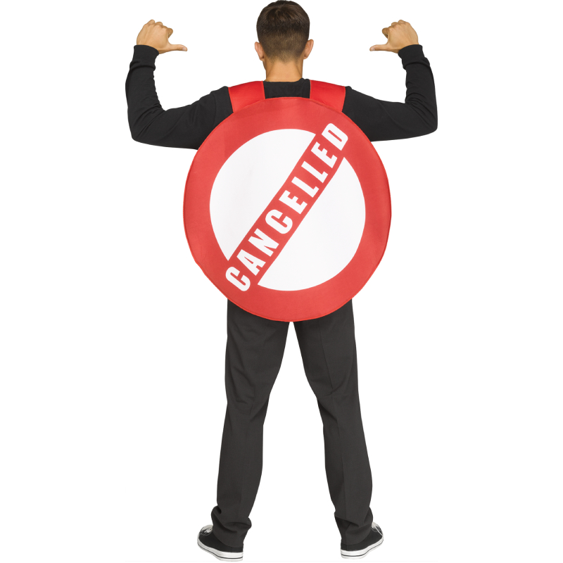 I Am Cancelled Adult Costume is the perfect way to lighten the mood surrounding a controversial topic. Pair this with your favorite celebrity wig and/or mask. Use fake blood to transform this costume into a more sinister take on today’s aggressive cancel culture. This costume is round with the signature red line through a circle. “CANCELLED” is written in bold white lettering. This tunic had 2 shoulder traps and slips over your head. Wear this as an easy costume idea for Halloween, reenactments, themed parties, drag, theatrical productions, or cosplay.