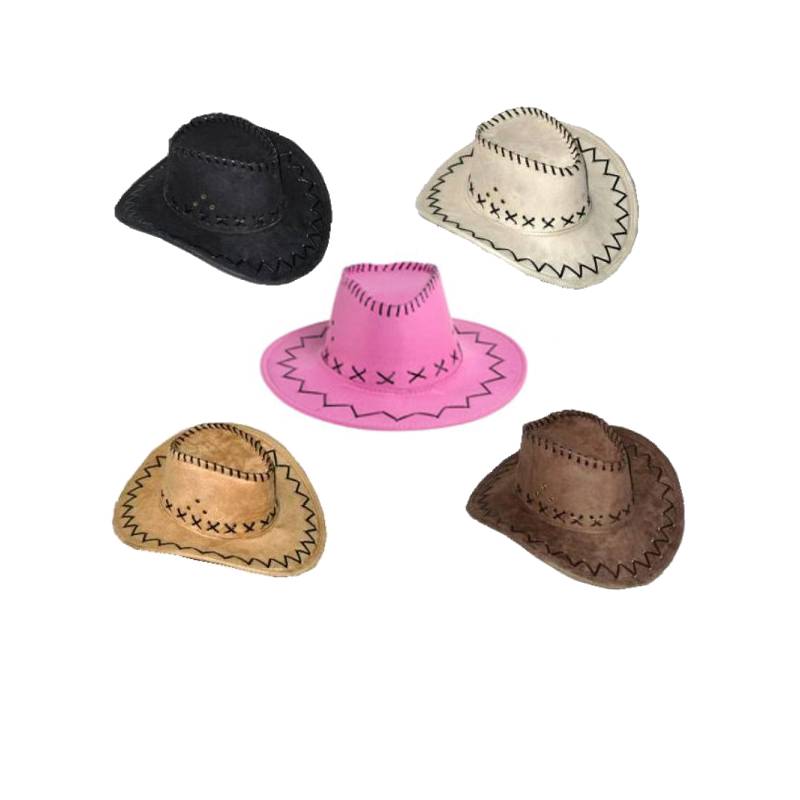 Wear Imitation Suede Western Hat w Cord and Stitching to the next hoedown throw down. Giddy-up to western themed parties and Halloween celebrations.