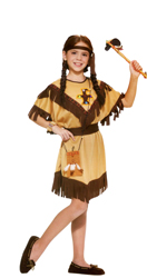 Native American Princess. Childs Indian Princess dress is made of 100% Polyester knit in tan and brown. Costume includes: