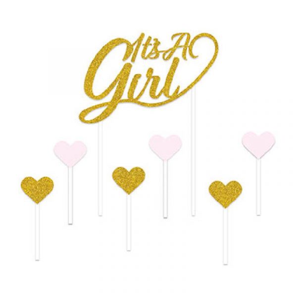It’s a Girl Cake Topper adds sparkle to your decorations. Use this for baby showers and gender reveal parties.
