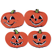 These Happy Jack-O-Lantern cutouts come 4 in a package. They are 12 ” each and are printed on both sides.