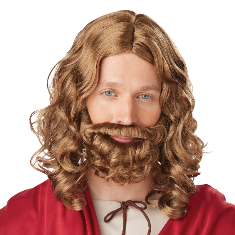 Jesus Wig, Beard, and Mustache. Choose from Adult size or Child size. You can really look the part when you are wearing this wig & beard set.