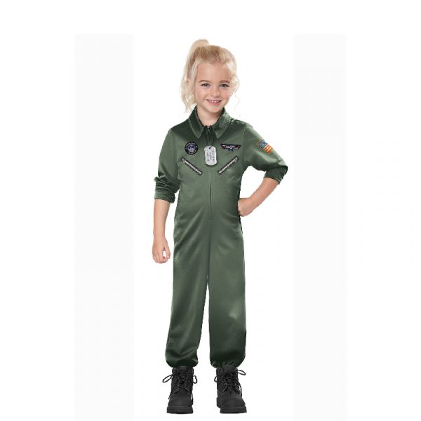 Wear Jet Pilot Junior Costume to be the best fighter jet pro. Wear this for Halloween, theatrical productions, reenactments, cosplay, school plays, themed parties and more. This junior pilot toddler costume is a zip up jumper with printed pocket zippers and flight patches with a USA flag patch on the shoulder. It also includes an ID tag necklace.