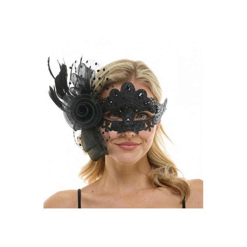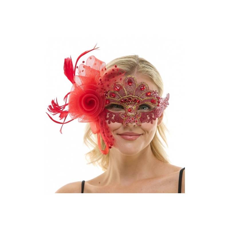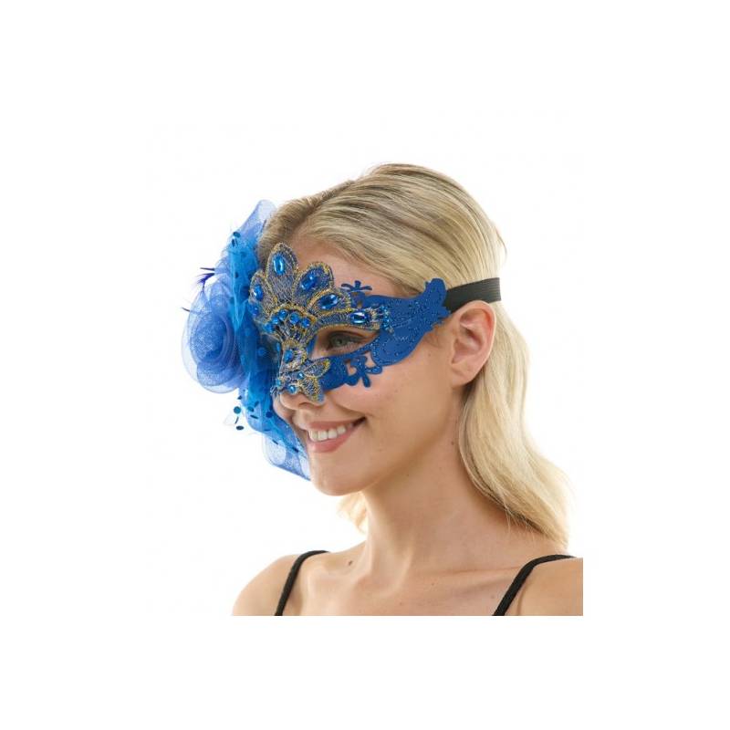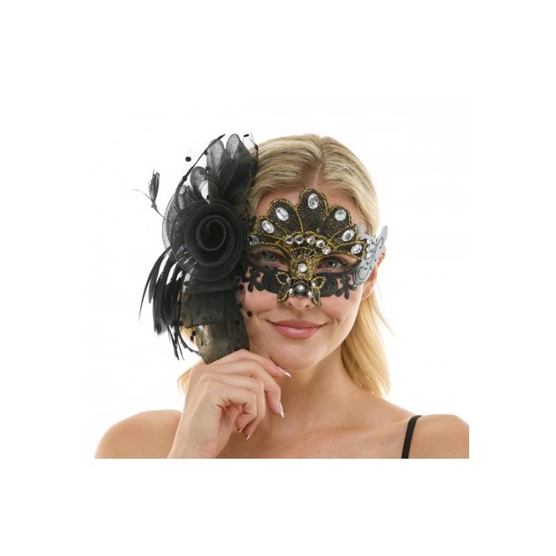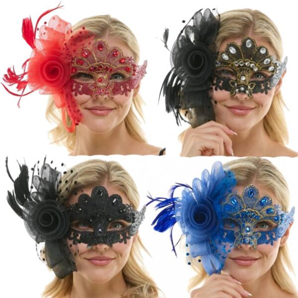 Jeweled Half Mask w Flowers & Feathers is elegant looking and very beautiful. Wear this for masquerade parties, Halloween, themed parties, and more.