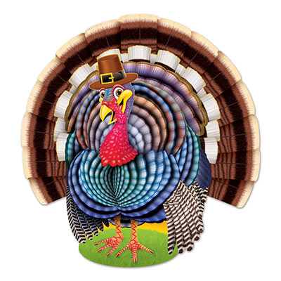 Add to your festive fall decor with this adorable turkey cutout featuring a colorful turkey in shades of blues, purples and browns with a pilgrim style hat and a happy smile.