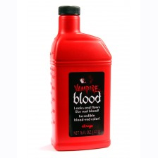 Vampire blood looks and flows like real blood. Perfect for Halloween Decorations and Costume Makeup. Vampire blood is available in several sizes: ounce, quart, half gallon, gallon.
