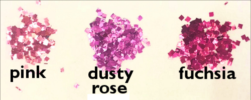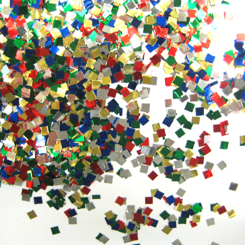 Jumbo Glitter Flakes are about 1/8″ squares or hexagons of glitter. Perfect for crafts, table decorations, and anything you want to add some sparkle to!