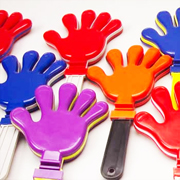 Jumbo Hand Clapper. Support your favorite team with these Jumbo Hand Clappers. You could use the red/white hand clapper as a decoration for Reds Games. Each set has two colors and are a great noise maker to show school spirit. These make a great fundraiser idea for the Booster Club in your school. Sell them at your team spirit store and cheer on your high school football team, basketball team, soccer team, cheerleaders, and more.
