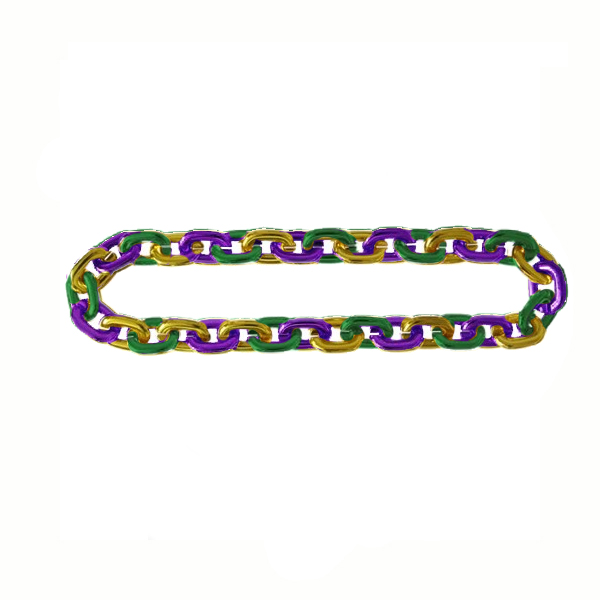 Wear this Jumbo Metallic Plastic Mardi Gras Chain Necklace to accessorize your outfit this year for Mardi Gras! 18″ Purple, green, and gold plastic chain.