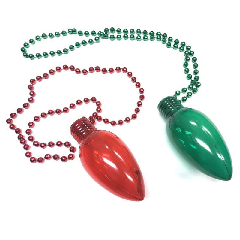 Get in the spirit! Wear a Jumbo Single Bulb Light-up Necklace. Choose red or green. Each necklace features matching beads and multi-function, flashing or steady, light bulb.