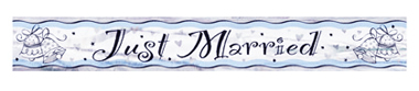 This 12 foot long Mylar banner says ” Just Married” again and again.