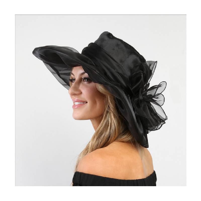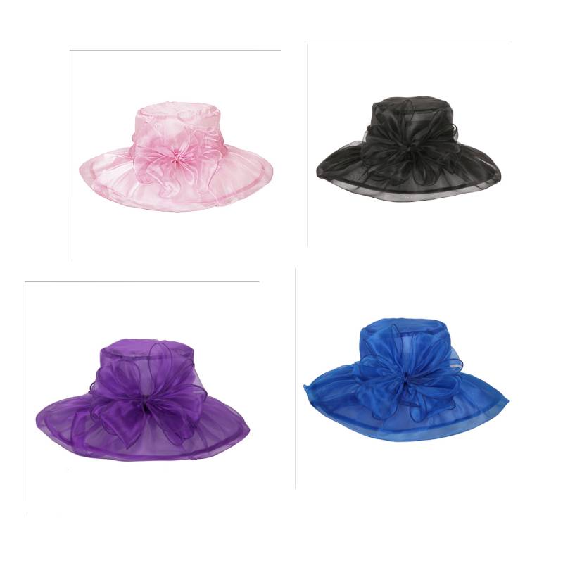 Choose from Black, Pink, Purple, or Royal Blue in this stylish Organza Fabric Kentucky Derby Hat with Bow! This stunning organza hat features a lovely 7.5″ 5-loop organza ribbon Bow. This is a beautiful hat. You could wear this to a Royal event, any special occasion, for a Kentucky Derby party, or a “My Fair Lady” costume accessory.