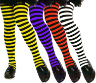 Child’s striped tights are available in 7 different color combinations. These make great costume accessories, and work well to show your favorite team’s colors. Each color combination is available in kid sizes: