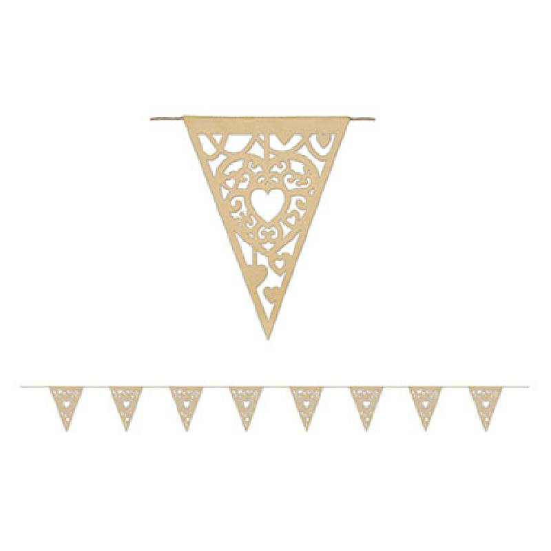 Die-Cut Kraft Paper Heart Pennant is intricately cut in to hearts and swirl designs. Use this for weddings or 50th wedding anniversaries.