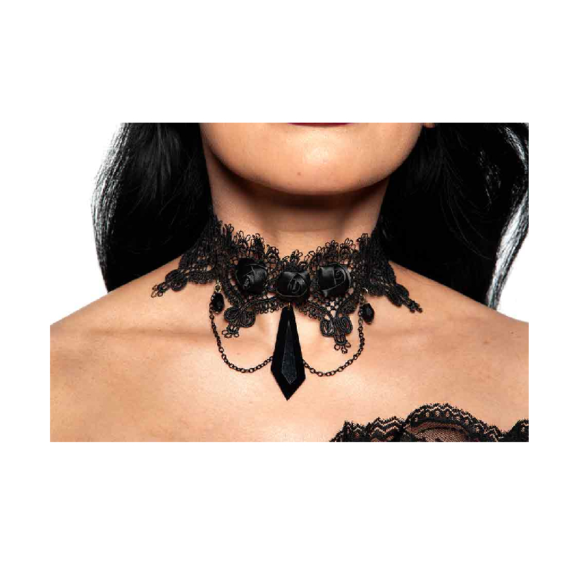 Overall, the Lace and Rose Choker is a stunning accessory that combines intricate lace craftsmanship with floral elegance, offering wearers a versatile and enchanting piece that complements a variety of styles and occasions.