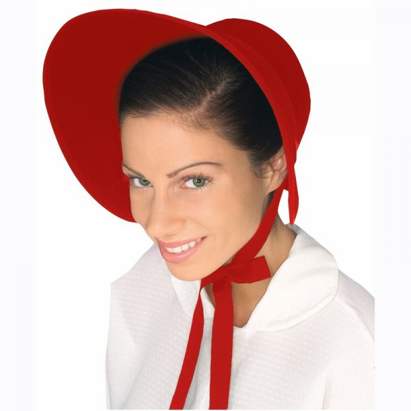 This felt bonnet is similar to those worn in the 1700’s to 1800’s. It features a wide front brim, and ribbon ties. The bonnet would make a great costume accessory for a school play, book report or presentation. One size fits most adults.