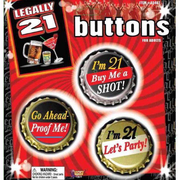 Legally 21 Assorted Party Buttons. Buy this for a 21st birthday party favor.