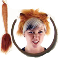 Soft faux fur ears and “mane” are attached to a headband for ease of use. The tail may be easily pinned in place or a belt may be threaded through.