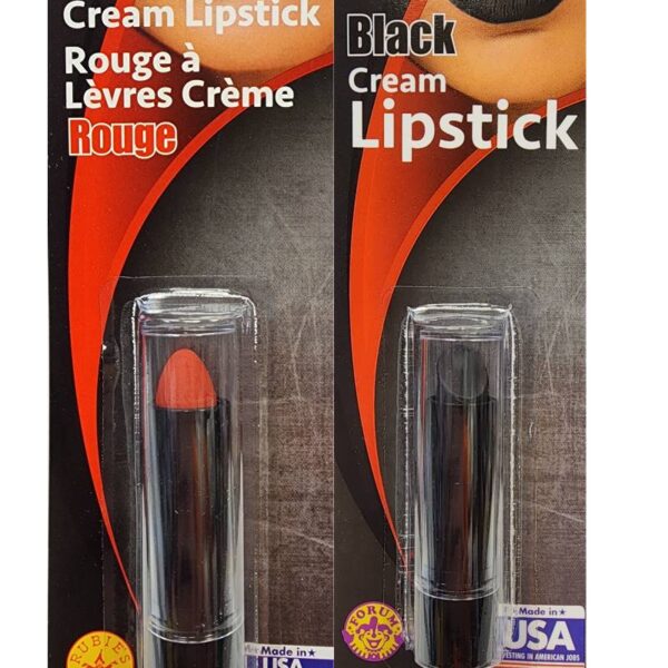 Lipstick Black or Red is creamy, full coverage makeup. It comes in 2 vibrant colors. Wear this to match a costume or outfit. Use this for Halloween, cosplay, play productions and everyday attire.