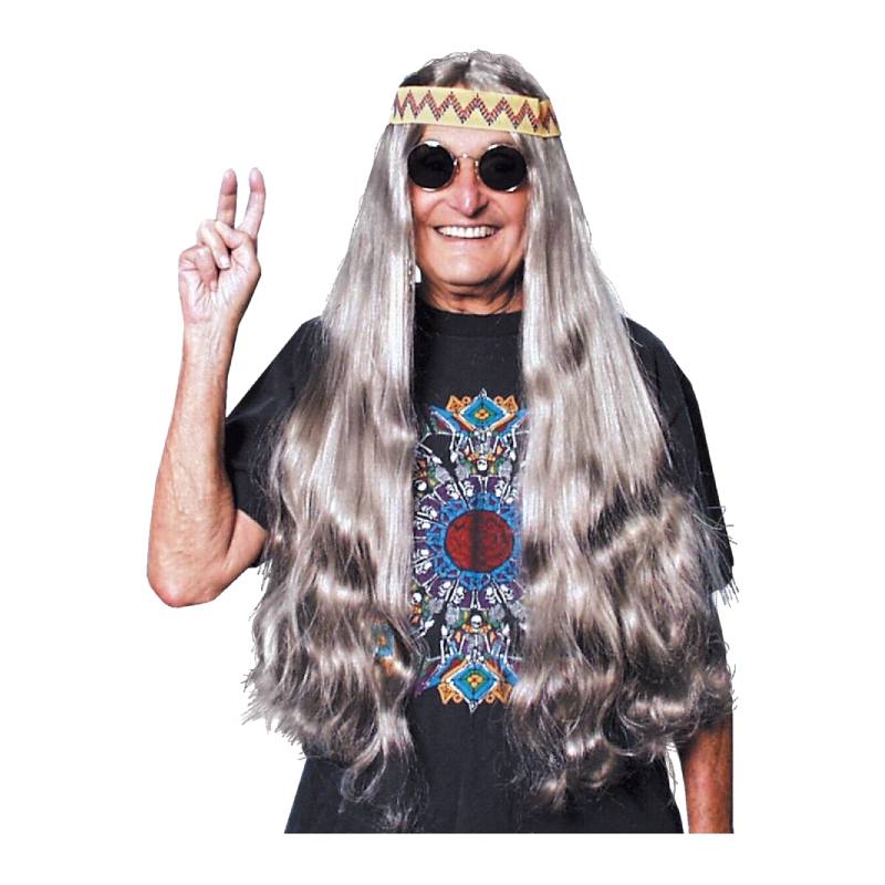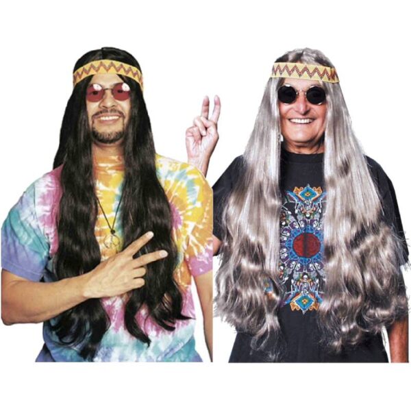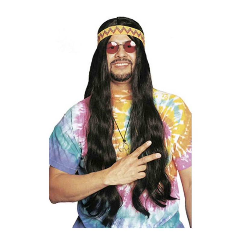 This long black Hippie costume wig comes with a detachable headband. It can be used by men or women, and works well as either a Hippie or Indian Halloween costume wig.